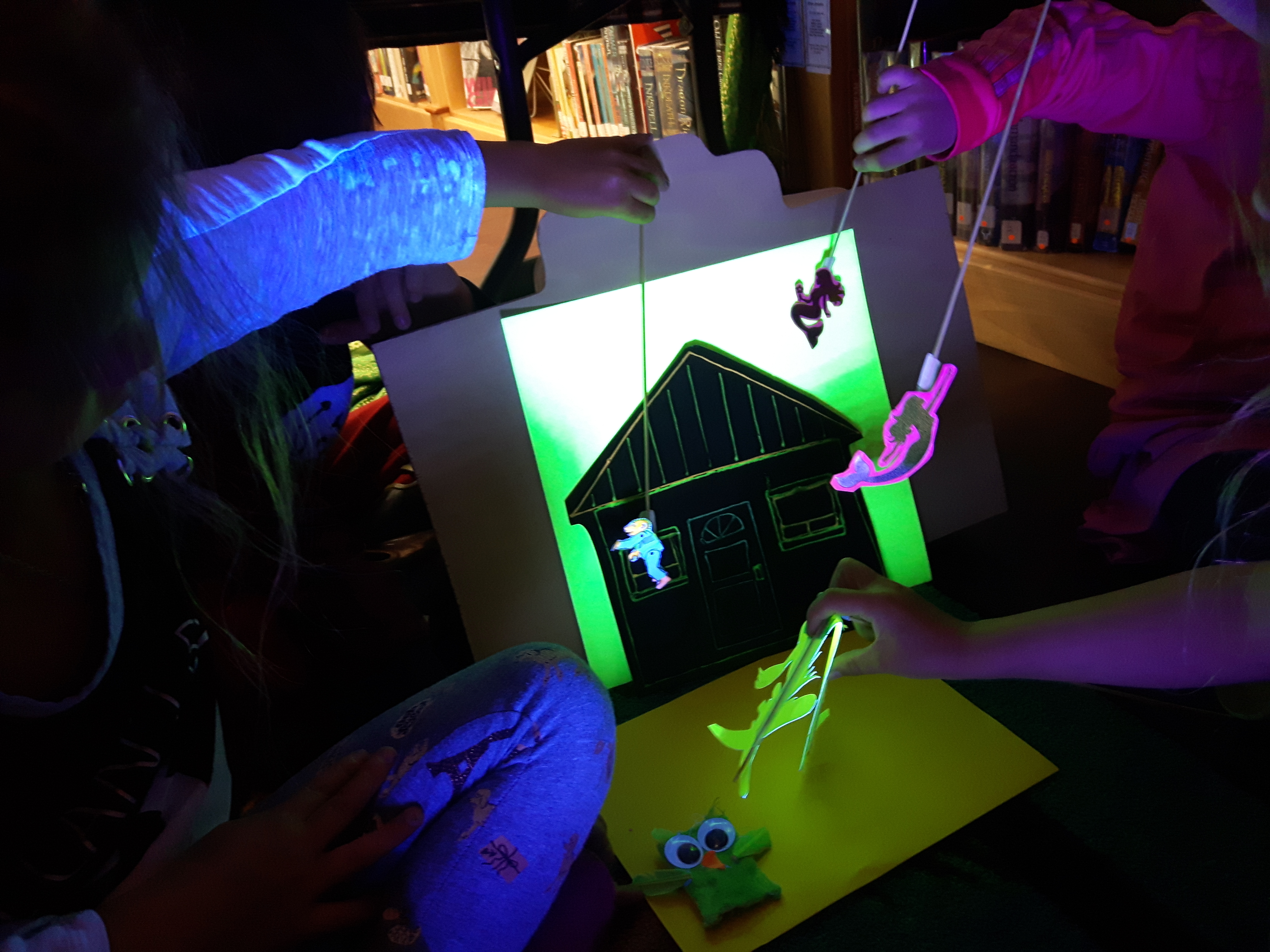 Here at ‘Puppets on the move’ we offer many forms of entertainment; Fun workshops, Black Light Puppet shows, Crankie box story time, table top puppetry, as well as interactive games and live offerings of all sorts of silly things. We are very adaptable and enjoy being creative and trying new things.